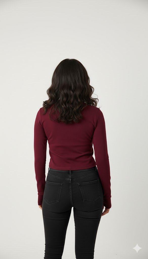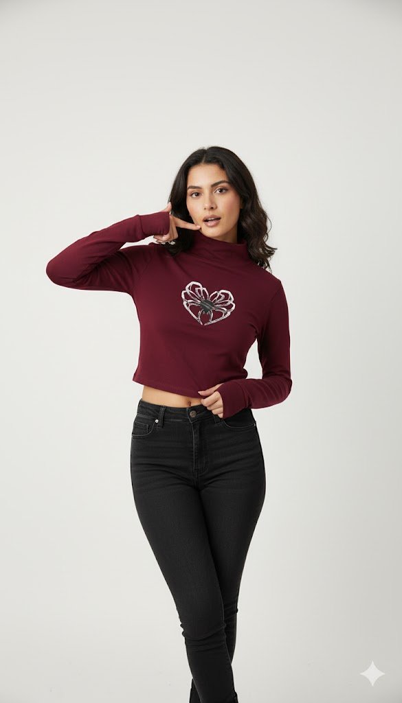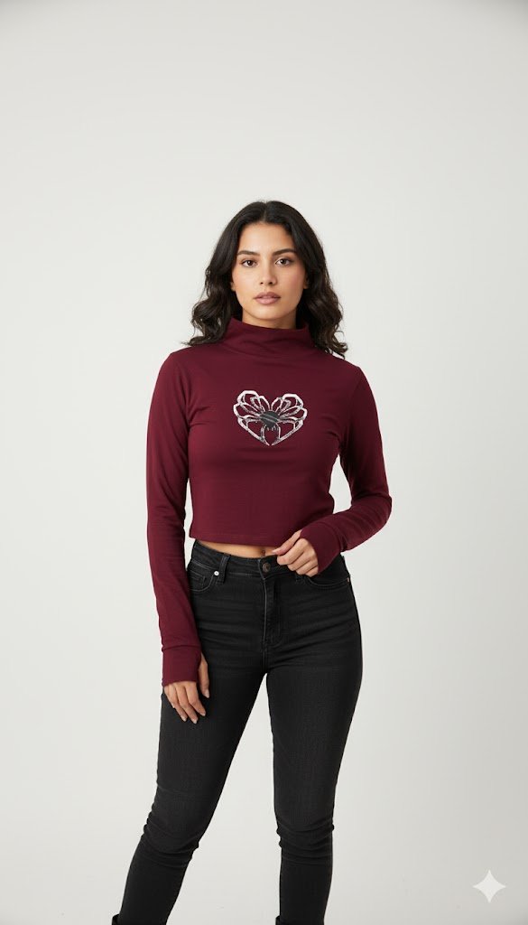 Maroon Spider Thumb Hole Crop Top